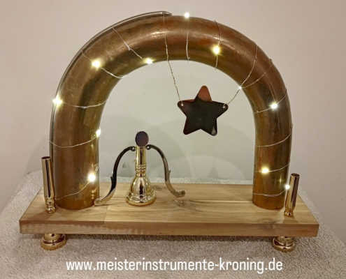 Exklusive, handgefertigte Unikate, die das Blechbläserherz höher schlagen lassen. Dieses große Exemplar hier, gefertigt aus einem Tubabügel, ist unser größtes Modell. Preis: VB.